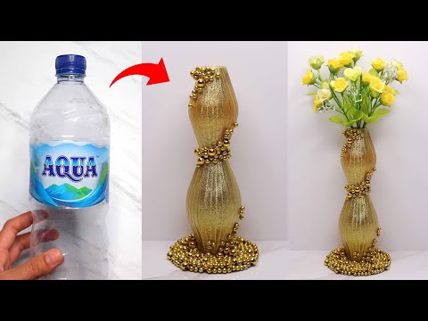 Vas bunga mewah dari botol plastik bekas AQUA 600 ml dan 1500 ml ! | Bes...