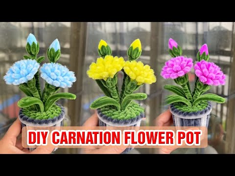 DIY Carnation Flower Pot: How to Make Beautiful Flower with Pipe Cleaner...